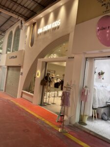 ビル内に子ども服のお店が集中している場所と、道沿いにお店が立ち並ぶ場所がありましたが、コロナの影響で以前よりお店はずいぶん少なくなっているようでした。