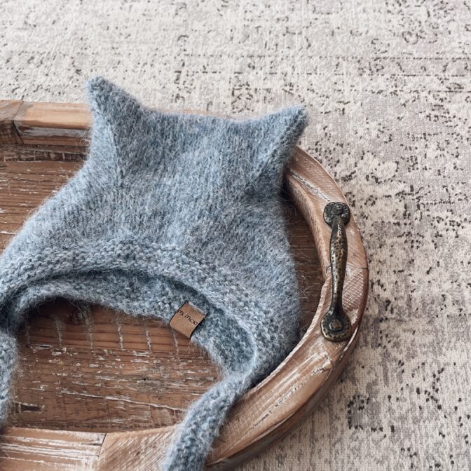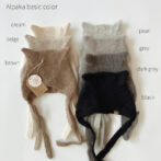 ふわりとした軽い毛糸となります。ハット自体も羽のように軽く感じます。毛足は若干長めです。糸の中でも一番人気の糸となります。