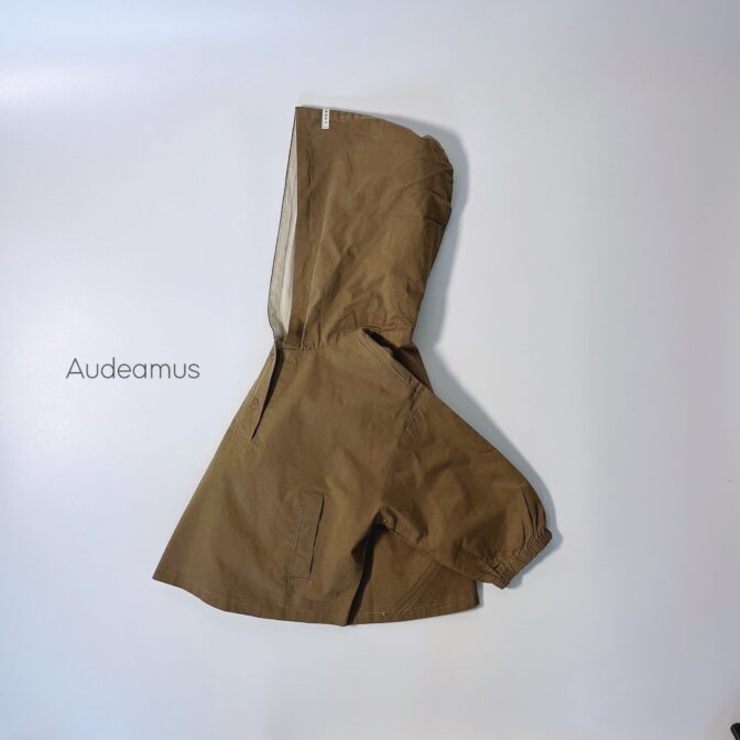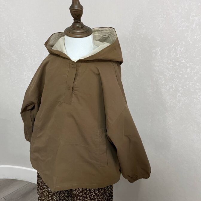 裏地のベージューと表地のカーキの合わせが可愛いと思いセレクトした一枚です。