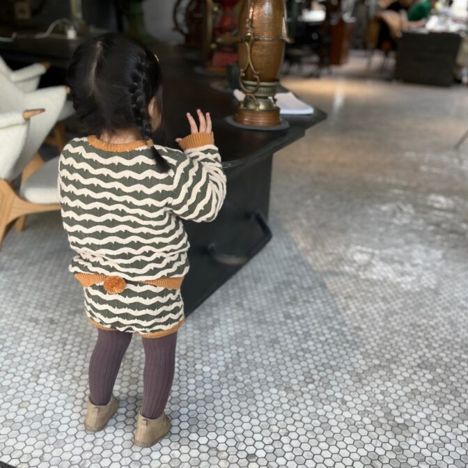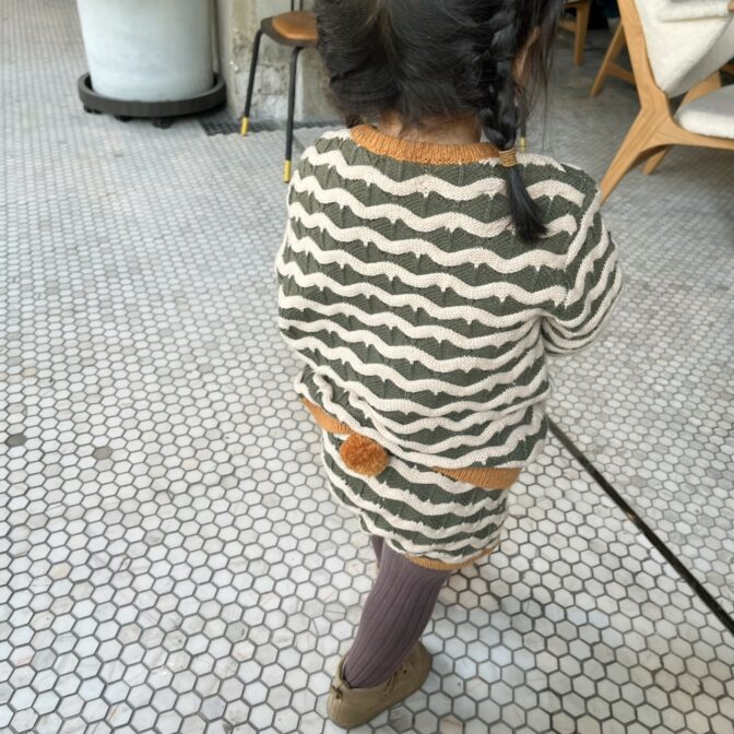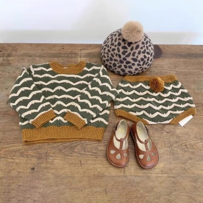 レトロな雰囲気と波波模様が可愛いニットセットアップ