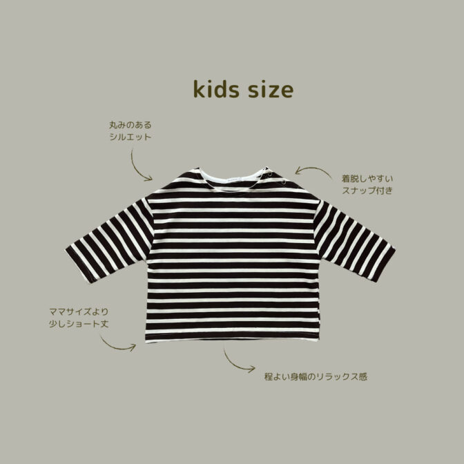 大人用もキッズ用も共通しているのは肩が落ちるややゆったり目のシルエットです。