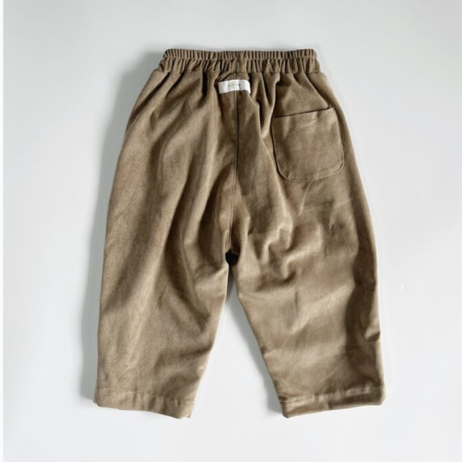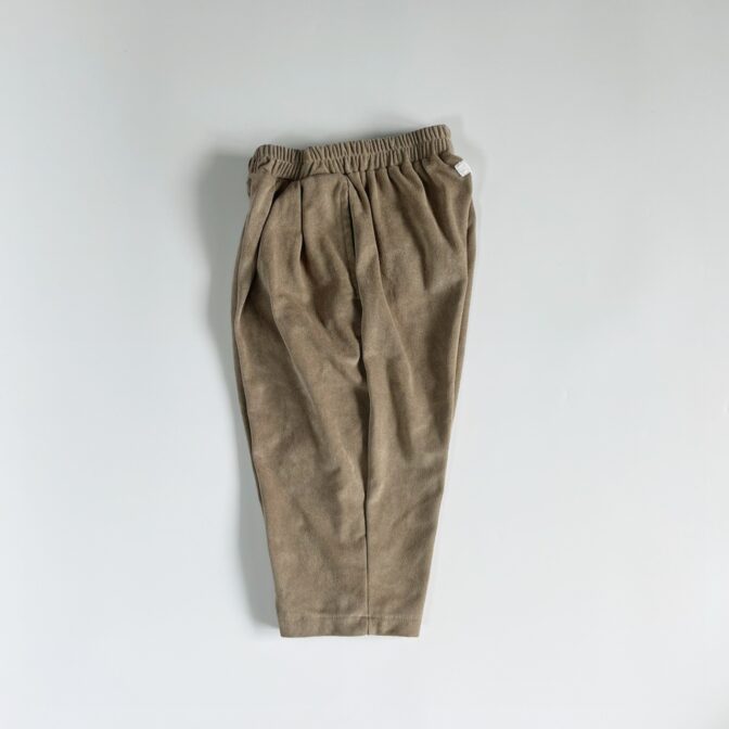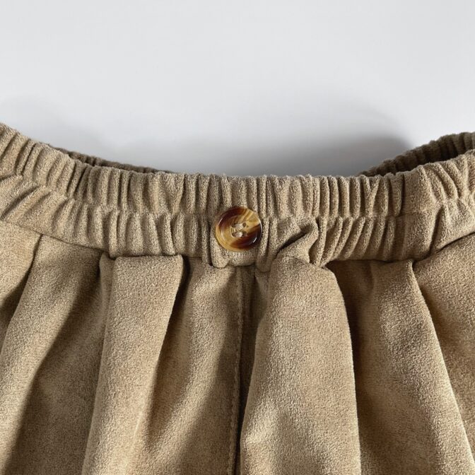 しわになりにくく、お手入れも比較的楽にも関わらず、おしゃれ感も出せるフェイクスエード生地を使ったパンツです。