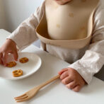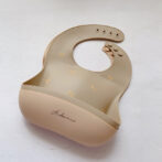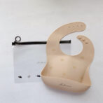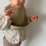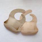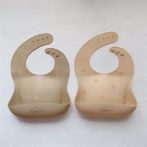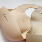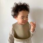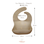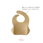 一方、ビブの色はママ好みになるようシックなくすみカラー2色(milk tea / mocha)をセレクトしました。